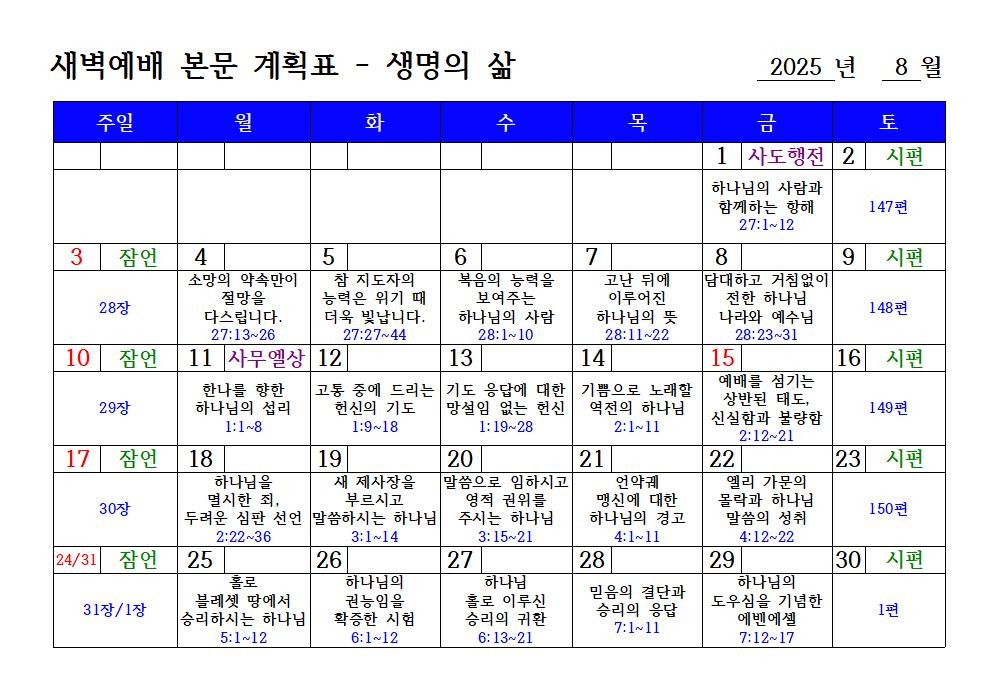 2025년 8월 행사 계획
